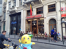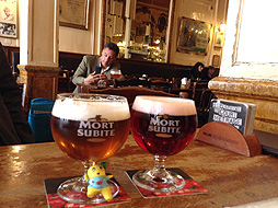 "A La Mort Subite", it is the most famous beer cafe in Brussels but the name of the cafe is horrible. The meaning of "Mort Subite" is "sudden death" in French....