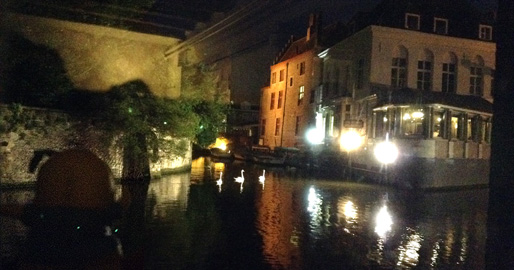 ブルージュの夜。部屋の窓からの運河の眺めなっしー。