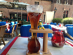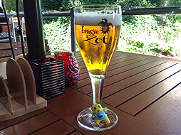 休憩がてら、地元のビール『ブルッグス ゾット ブロンド / Brugse Zot Blond (度数 6%)』を飲むなっしー。