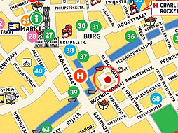 「後ろに移りこんだ屋根/運河の近く/橋の上/ボート乗り場がある/チョコレート屋さんがいくつか見える」がヒントなっしー。