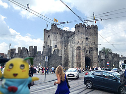 川岸から少し歩いて、古いお城「フランドル伯居城」に到着なっしー。