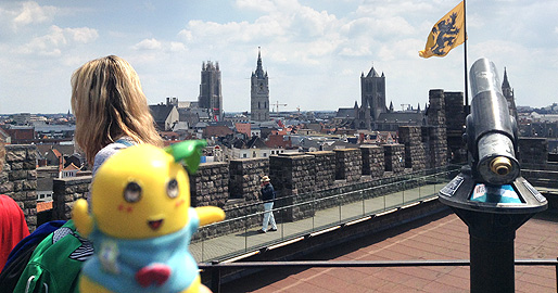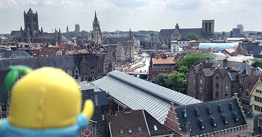 城の屋上からはゲントの町並みが見渡せるなっしー。