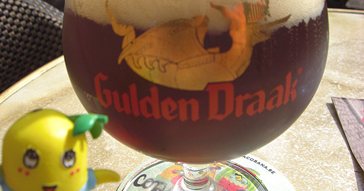 グーデン ドラーク(Gulden Draak)は「金のドラゴン」っていう意味なっしー。グラスの模様を見てもわかるなしなー。ゲントの伝説の中のドラゴンをモチーフにしているなっしー。