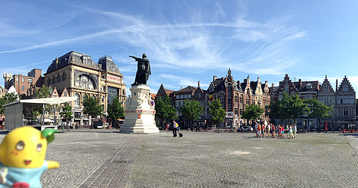 しゃれたカフェやレストランが広場の周りに並んでいて、ここもいい感じなしなー。銅像は、ヤコブ・ファン・アルテフェルデ(1290年-1345年)というフランドルの政治家で百年戦争の初期にフランドル都市連合の指導者となった賢人だそうなっしー。(←ちなみにウキペディア調べなしよ)