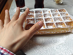 ワッフル(粉砂糖がけ) 5.5 Euro(760円 / 1 Euro=138円)。