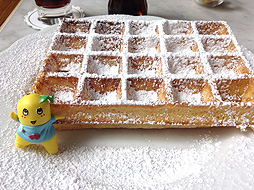 ふわふわした巨大な長方形で粉砂糖なんかをまぶして食べるのが「ブリュッセル・ワッフル」なっしー。