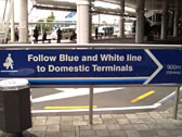 Follow blue and white line to Domestic Terminals