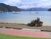The dozer was cleaning the beach. This was why the beach was always clean and beautiful. That was a real popular tourist spot!