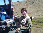 It was a fine day but the wind blew up while fishing. The water got choppy and I couldn't stay in the water. So we gave up fishing there and had lunch with a bottle of red beside the lake. I drank it all because he was the driver! I was afraid of drowning in the afternoon....