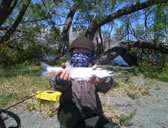 I took a few pictures with the fish and I released it. I went back and fished and I casted the lure over and over agein. In less than an hour after restarting I got another one! The second one was also Lake Salmon and I released it as well.