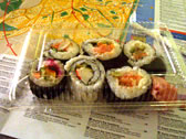 This signborad stood out! The first line of the sign are Japanese charactors and it means "very". The second one is Japanese word written in Roman letters. It means "tiny". The last one is English, "SUSHI BAR". It is a mysterious use of a combination of language. It is beyond my imagination. Where does this idea come from...? For your information, the sushi was nice!