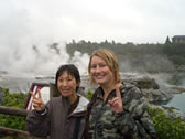 Marnie at the entrance of Te Puia. She had been my English teacher in Japan before and now she was living in the North Island. We'd met each other for the first time in more than one year. She came and saw me in Rotorua from her home. Thank you very much for coming all the way!