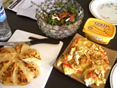 Andy made a wonderful dinner for us. Freshly grilled cut fish, topped with cheese and onion, and a green salad was served. I was very glad that potato wasn't served with them!
