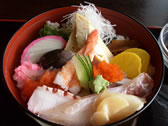 It had an expensive-looking, exclusive restaurant so I went out for lunch. I had chirashi sushi, vinegared rice with several kinds of sliced raw fish, with vegetables arranged on top. It was the 14th time to have a Japanese dish on my trip!