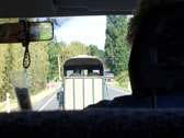 A vehicle with horses was driving in front of us. It's an unusual sight in Japan.