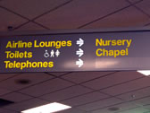 I saw the word "Church" on the sign. I followed the sign and found a room with a cross on the door as a church. I was really surprised. I wondered what were the people like who went to church at the airport?
