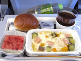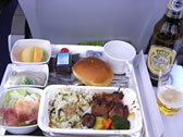 Is the biggest airline company in Germany and it is also the second biggest airline company in Europe. One of the reasons why I had chosen Lufthansa was that it was the national airways of Germany. Because my image of Germany was that they were all big, I had thought that a seat of Lufthansa was wider than another airline's seat. But it wasn't wider than I had expected.... Of cource, it wasn't so uncomfortable to me because I was small and I had reserved an aisle seat. However non-Japanese around me had a big build and they hit their knees on the seat in front of them. They all looked scrunched up in ther seats during the 12 hour flight and I kind of felt sorry for them.