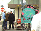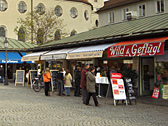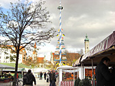Is a big open air market close to Marienplatz where it was possible to find all the Bayern specialities. The blue and white pole at the market is called "Maibaum(Maypole)". It was a tradition going back to the 16th century and it is a kind of traditional spring event. However, the maypole at the Viktalienmarket is a permanent feature and you can see it all year round.