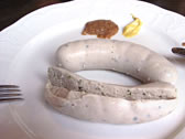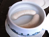 One of the famous Munich specialties is Weisswurst(white sausage). Because of its perishability, it used to be served until noon in the days before fridges. Even today, most of restaurants still served it only in the morning. In short, white sausage is served for breakfast!