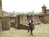 left: View of the castle from the Karl-Theodor Bruecke. It is a popular symbol of the Heidelberg and it is well-known as the old bridge.