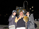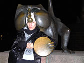center,right: There is a "Bridge Monkey" at the foot of the bridge. The unique sculpture was made in 1977 by a local artist. The monkey holds a round mirror in his left hand with a funny smile on his face, and there is also a small mouse next to it.