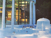 I couldn't take a camera inside the bathing area. These photos were provided from its postcards. The bathing area had a large varieties of inside pools and outdoor pools with different high temperatures. However the temperature is quite lower than typical hot springs in Japan.