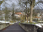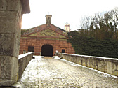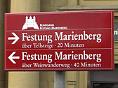 On the west end of the bridge there was a signboard with arrows showing two different ways to walk up to the fortress.
