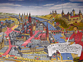 A town map of Wuerzburg. Incidentally, the man dressed in red was Philip Franz von Siebold, who was a German physician and he was the first European to teach Western medicine in Japan.