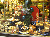German sweets and huge bread in store windows were also interesting. Especially a glasses store was decorated with Japanese popular character "Hello Kitty" and it made me attractive.