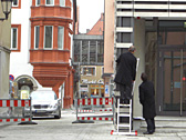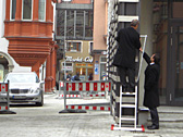 What do you think these guys in suits are doing? Maybe, they were decorating their company