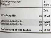 I changed trains at Steinach and it took 60 minutes by train from Wuertburg to Rothenburg.