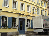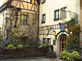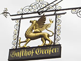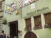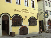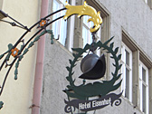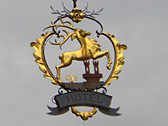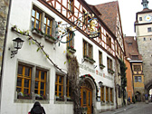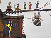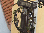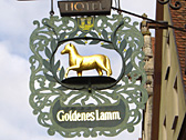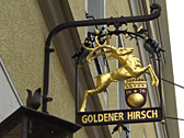 It is a sign of a hotel. The red color something on it, under the the deer is a kind of castle and it is the mark of Rothenburg.