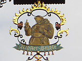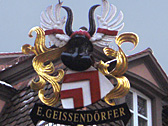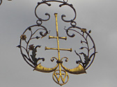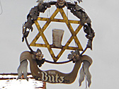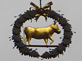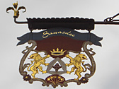 Double-headed eagle is designed on the sign. It was a sign of a souvenir shop.