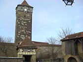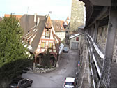 A series of town wall defended the city from over the ages. These days, it seems that the wall divides the Middle Ages from present age. While walking on the town wall, you can see both row of medieval houses within the wall and modern streets of Rotenburg.
