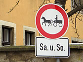 The traffic signs have been well-designed so that visitors from foreign countries could understand them. The town was popular destination for tourist indeed. I heard that a popular way to see the whole town was to take a horse carriage.