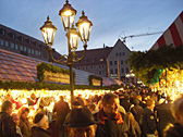 During the event, more than 150 tents are set up at the Marienplatz, which is a main square in front of the cathedral.