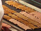 If you walk around the market, you will sense with the rich smell of something. It is the smell of the roasted Nuernbergerwurst(Nuernberg sausage). People said that it is the best sausage in Germany.