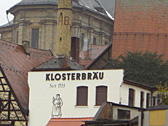 I heard that Bamberg was a reasonable sized town and it was easy to explore there. But actually, it was quite hard to look for the desired brewery with a map held in my hand. Because all the information about the brewery location was "It's located along the old town river." and "The brewery building has a high chimney and its wall facing the river has a picture of a monk.".