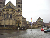 First, I walked up to the hill overlooking the twon. There was a wonderful cathedral dating back to the 11th century. It is the most important building of Bamberg and its construction began in 1004 and ended in the 13th century. The cathedral was a huge beautiful building with four spires but it was too huge to take the whole view.