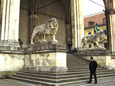Odeonsplatz was located very close to Marienplatz and it was a large pedestrian square surrounded by tourist attractions. One of the eye-catching buildings was the Field Marshal's hall with two Bayern lions at the entrance. It was built to honor the German military heroes.