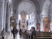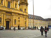 A mustard colored building next to the Field Marshal's hall was Theatine Church. The design of the church was based on Italian baroque style.