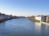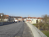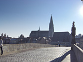 This stone bridge is just at the edge of the old city across the Danube River. The picture showing the cathedral is the side of the old town picture.