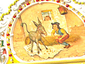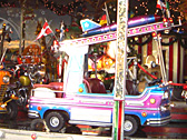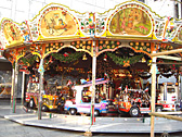 Illustrations of the Merry-go-round were very old-style but the cars are modern decorated with multi-colored, electric lights. It was really funny.
