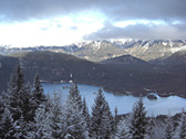 Eibsee is a lake which is located in the foot of the Zugshpitze and you can look down on the lake from the window.