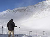 When I went out from the train station, there was a white fied spreaded out in front of me under the blue sky. I was amazed by the beautiful view! The train runs through the mountain tunnel from the middle of the mountain. I couldn't look out the window and I didn't expect such a good weather!