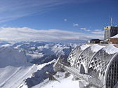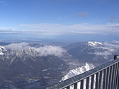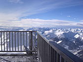 View from the Zugspitze platform looking toward Austria. Zugspitze is in the southernmost region of Germany and it is part of the northern Alps. If the weather is good, you will have a wonderful panoramic view of the mountains and peaks of the Bavarian and the Austrian Alps.