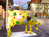 I saw another cow-shaped sculpture on the street once again! For what? Famous for what?