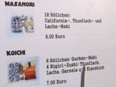 The funny thing was that each combo meal was named after personal Japanese names. The price of sushi "Mayuko", which is a common girl's name in Japane, was 5euro and the price of sushi "Koichi", which is a common boy's name, was 7 euro!
