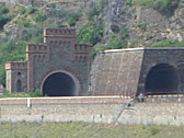 The entrance of a tunnel on the river bank looled like part of a castle.
