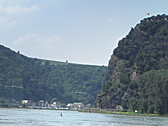 The Loreley is a 132m high rock, standing out from the Rhine, near the town of St Goarshausen. In the old days at this point, the river was 25m deep and only 113m wide. It was the narrowest and deepest place of the Rhine.